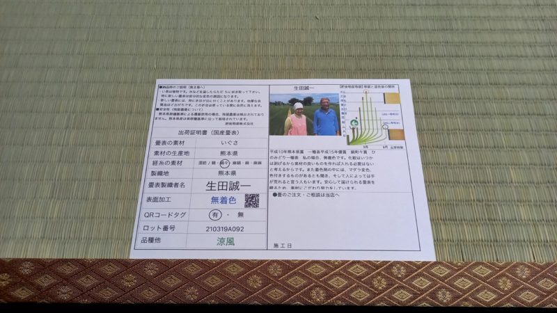 熊本県い草農家生田誠一さんの畳表使用