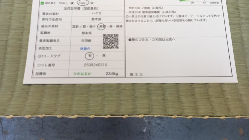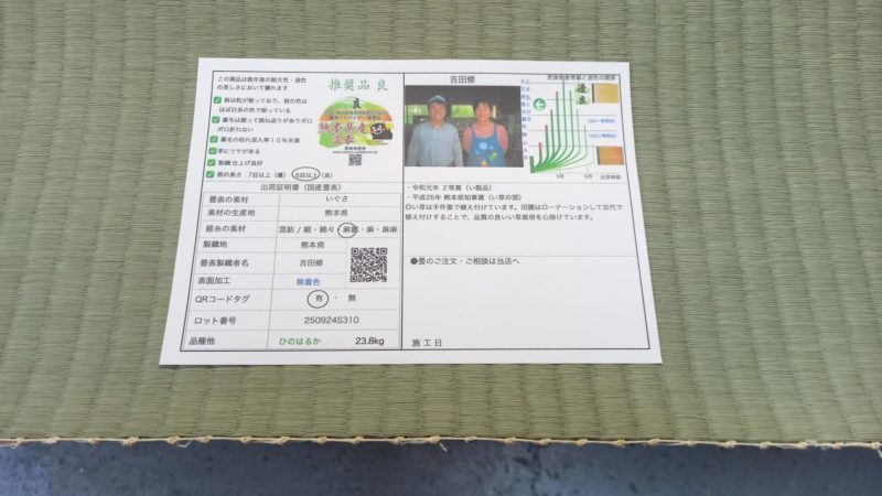 生産者熊本県い草農家吉田修さんの畳表使用